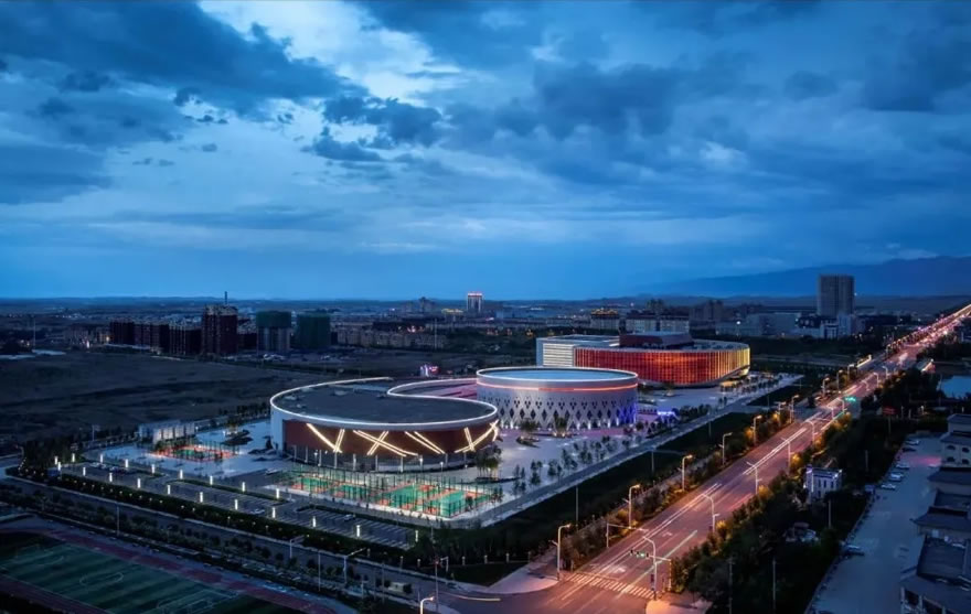博尔塔拉蒙古自治州全民健身中心、文化艺术中心位于博尔塔拉蒙古自治州首府博乐市,总建筑面积7.6万平方米。项目集篮球馆(3408座)、羽毛球馆、乒乓球馆、游泳馆、网球馆、剧场(1066座)、电影院、图书馆、美术馆等于一体,是博尔塔拉蒙古自治州地区规模最大、功能最全、设施最先进的大型现代化综合文体建筑。