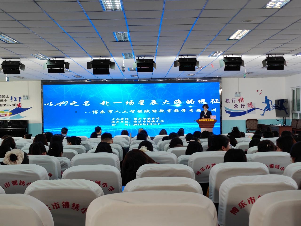 为深入贯彻《教育强国建设规划纲要(2024—2035年)》《关于实施第二批人工智能助推教师队伍建设行动试点工作的通知》等文件精神,大力推进博乐市义务教育教学改革国家试验区、自治区示范区建设工作,2025年3月11日,博乐市教育局在锦绣小学成功举办了人工智能赋能教育教学专题培训。此次活动吸引了近400名中小学教师、教育管理者及教研人员现场参与,线上观看人数突破500人次。
