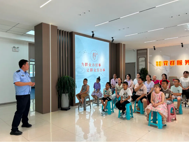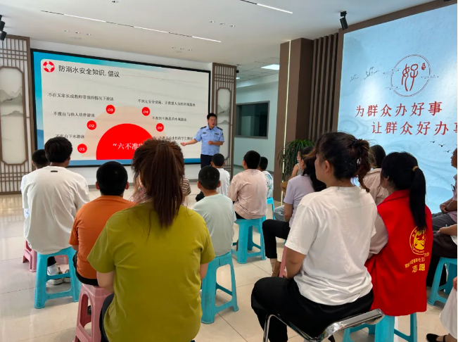 活动中,社区警务室民警马玉辉以近年来青少年溺水真实案例为切入点,剖析野外水域漩涡、暗礁等潜在危险,重点讲解“六不准”原则:不私自下水、不擅自结伴游泳、不在无监护人陪同下游泳、不到无安全设施水域游泳、不到陌生水域游泳、不盲目下水施救。针对家长群体,他特别强调需强化监护责任,对孩子行踪做到“知去向、知同伴、知内容、知归时”。