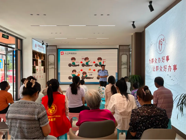 “发现有人溺水,要先呼救报警,再用长竹竿或救生圈施救!”马警官现场演示利用工具救援的正确方法,指导青少年进行心肺复苏模拟操作,并同步开展海姆立克急救法教学。社区工作人员向家长发放《防溺水安全手册》,通过漫画图解、救援流程图等形式强化记忆,不少孩子主动向家长复述“遇到危险不慌张”等要点。
