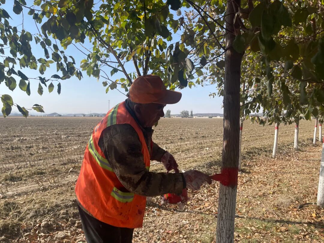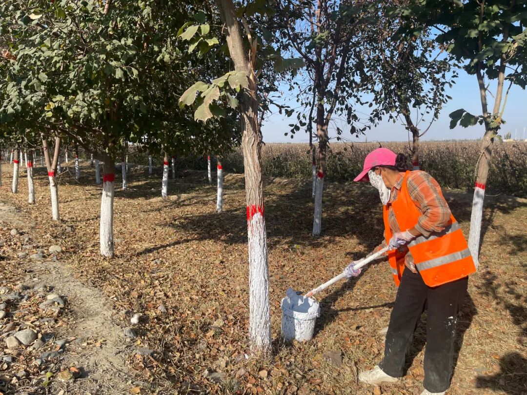 此次达勒特镇的秋季树木养护行动,是博乐市全市范围内树木越冬防护工作的缩影。当前,博乐市已同步启动城区及各乡镇场的树木“刷白涂红”工作,通过统一部署、分级落实,为全市树木构建起“立体防护网”。不仅让树木在寒冬来临前获得“安全保障”,更以整洁美观的生态景观,为城乡环境增添一抹亮色,助力打造生态宜居的美丽家园。