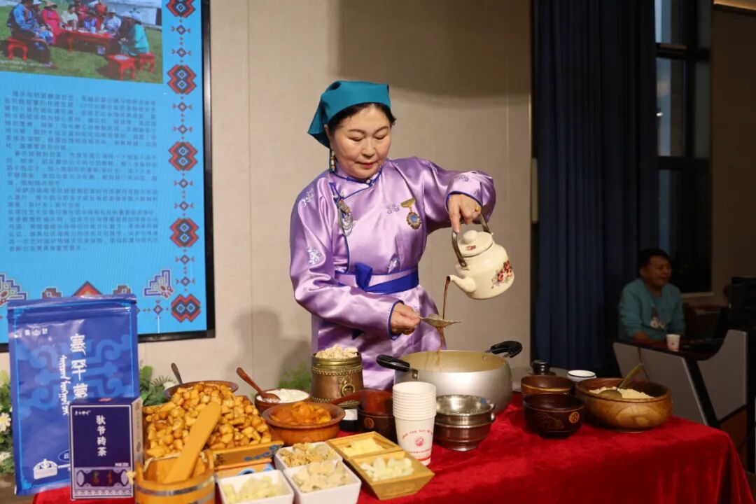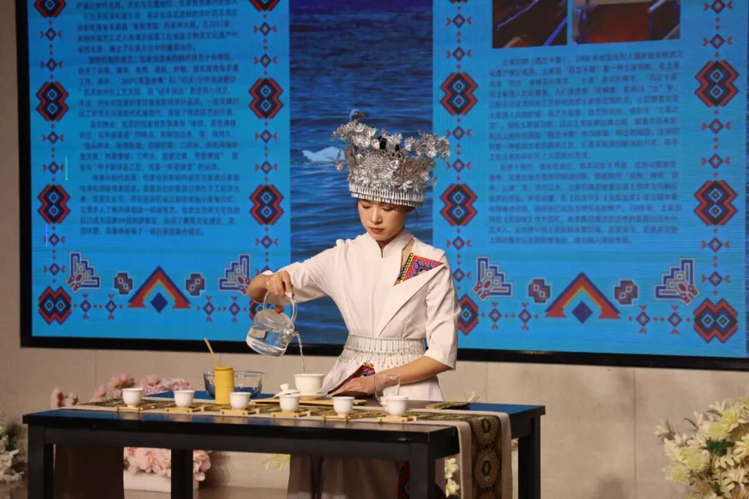 当日下午,华舞展演与教学活动在云鹏宴会厅精彩启幕,博乐市文化馆带来的《起舞盛世》《江格尔十二勇士赞》《萨吾尔登》等节目尽显边疆风情与草原文化的雄浑壮阔,湖北阿尼阿兹文旅演艺有限公司演绎的《八宝铜铃健身操》《哩嘞响》等作品则将土家族非遗文化的灵动韵味展现得淋漓尽致,男女声合唱《美丽富饶的博尔塔拉》、歌伴舞《土家迎客歌》更传递出两地人民的热情好客;展演后,贡茶表演与品鉴、西兰卡普织锦展示与教学、舞蹈教学互动等环节接连开展,伍家台贡茶与博乐非遗奶茶的香气交织,织锦技艺的体验妙趣横生,两地文艺工作者还携手编排融合舞蹈片段,让武陵神韵与天山风情实现了完美交融。