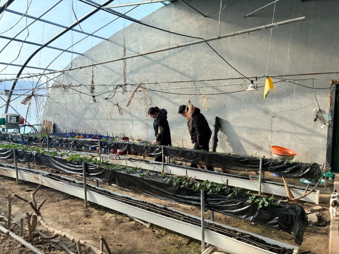 1月9日,隆冬时节的博乐市贝林哈日莫墩乡决肯村,田野被薄雪覆盖,而温室大棚内却暖意融融、绿意盎然。记者走进村民张晓玉的采摘大棚,草莓苗长势正盛,翠绿的叶片层层叠叠,藤蔓间缀满青涩的幼果,虽未成熟,却已孕育着冬日的甜蜜期待。