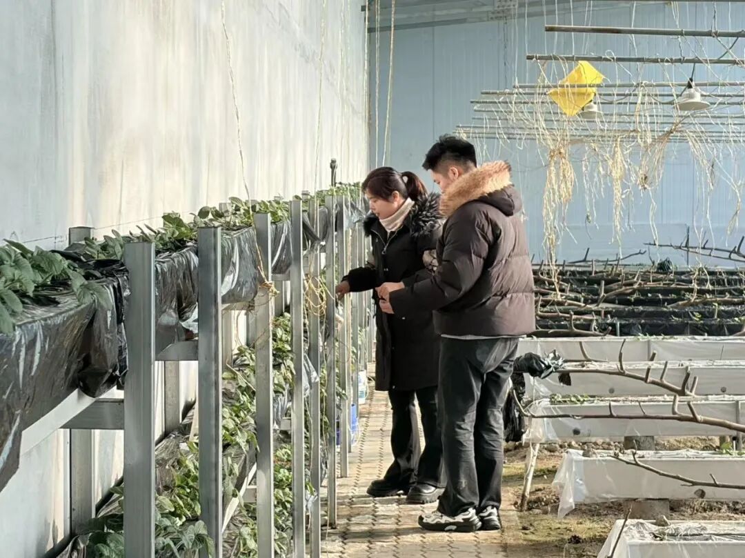 大棚内,无花果树的枝条修剪整齐,虽已过采收期,仍保持着良好的生长态势。张晓玉告诉记者,这些无花果树耐寒耐旱,今年7月挂果后,吸引了不少市民前来采摘,软糯香甜的果实深受喜爱。11月无花果采摘结束后,她立刻着手整地施肥,施入充分腐熟的农家肥改善土壤,为草莓种植筑牢基础。“现在草莓正处于膨果期,我们通过滴灌系统精准调控水肥,棚内温度稳定在20-25℃,预计再过半个月就能陆续成熟,春节前后将迎来采摘高峰。”张晓玉说。