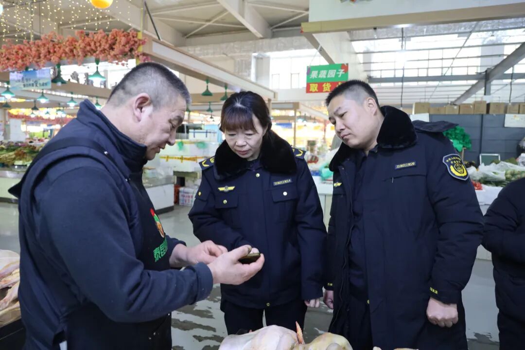 在各重点生产基地、批发市场及农贸市场,执法人员手持专业设备开展现场抽检,聚焦农药残留、兽药残留等核心指标,以“随机抽样+靶向检测”提升筛查精准度,所有样品均开展农兽药残留检测,对不合格产品启动“检打联动”机制依法查处,坚决杜绝问题农产品流入市场。同时,执法人员现场指导经营主体操作电子承诺达标合格证,这份标注产地、检测结果及承诺的“电子身份证”,既方便消费者扫码查验安全状况,也助力经营主体规范管理、实现“带证上市、带码流通”。