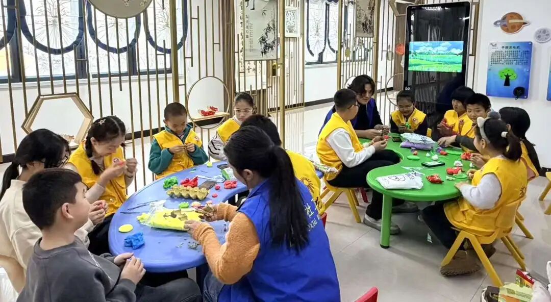 活动现场,多样的创作材料瞬间吸引了孩子们的注意力。在志愿者的悉心指导下,大家积极投入创作,有的与同伴轻声交流创意想法,有的主动请教技巧难点,有条不紊地勾勒、塑形、拼接,亲手打造出小兔子、蘑菇屋等各具特色的手工作品,现场充满欢声笑语。志愿者们穿梭其间,及时答疑解惑、提供协助,全力助力每个孩子完成专属作品。