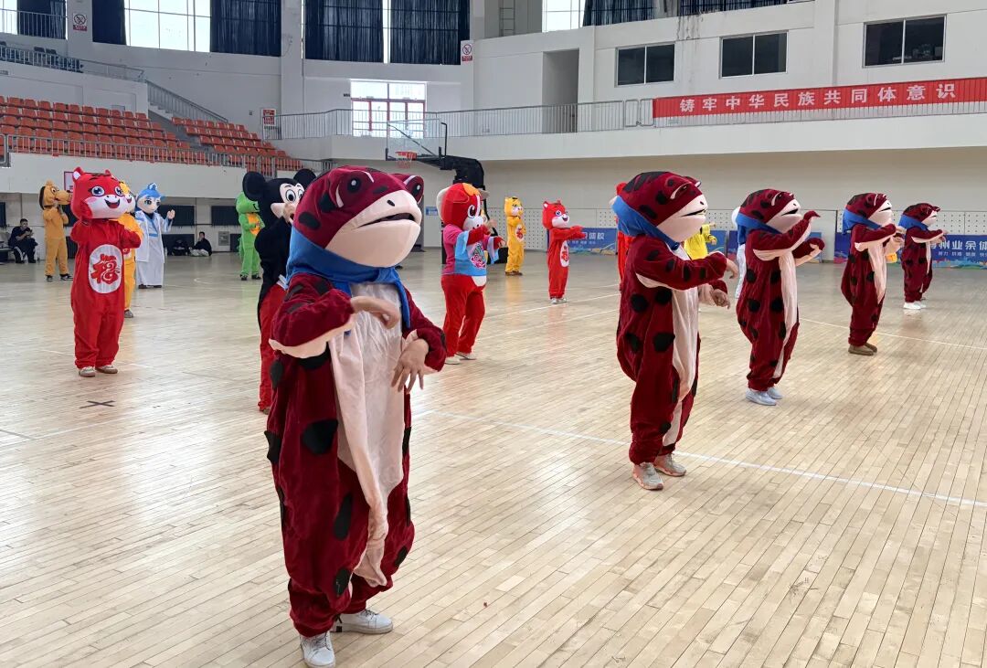 彩排现场,骏马造型服饰灵动威武,寓意马到成功;熊猫、老虎、小羊、小猪等萌兽人偶憨态可掬,蹦跳互动,将传统社火与现代趣味巧妙融合,引得阵阵欢笑。伴着鼓点,参演人员步伐整齐、队列多变,红色骏马与斑斓萌兽人偶交相辉映,传统喜庆与时代气息交融,体育馆内一片欢乐。不少市民驻足观看,用手机记录下热闹瞬间。