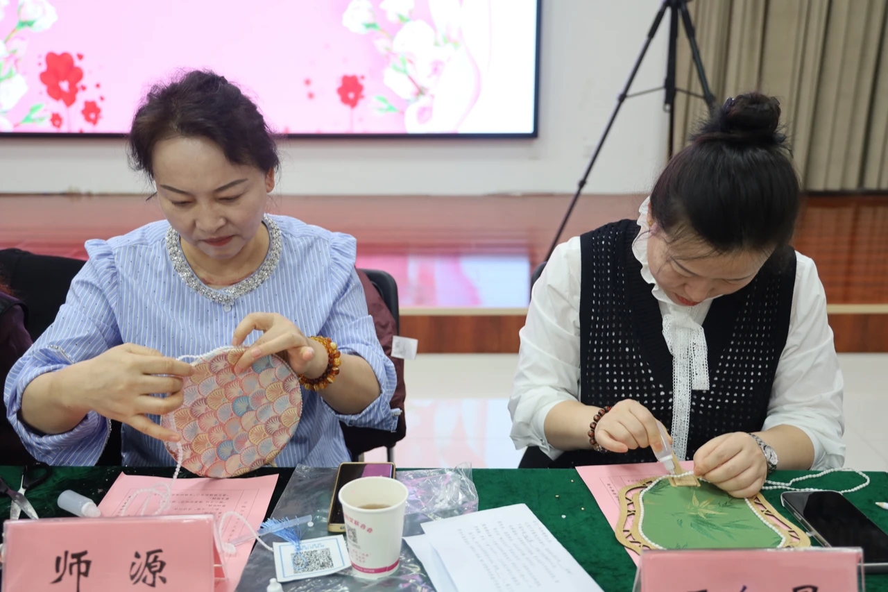 在“遇见锦绣的自己”宋锦珍珠扇手作沙龙中,参会妇女代表们在专业老师的指导下,亲手制作宋锦珍珠扇。大家专注制作、用心点缀,在沉浸式体验中感受传统手工艺的独特魅力,放松身心、陶冶情操,充分展现了新时代女性对美好生活的追求与向往。