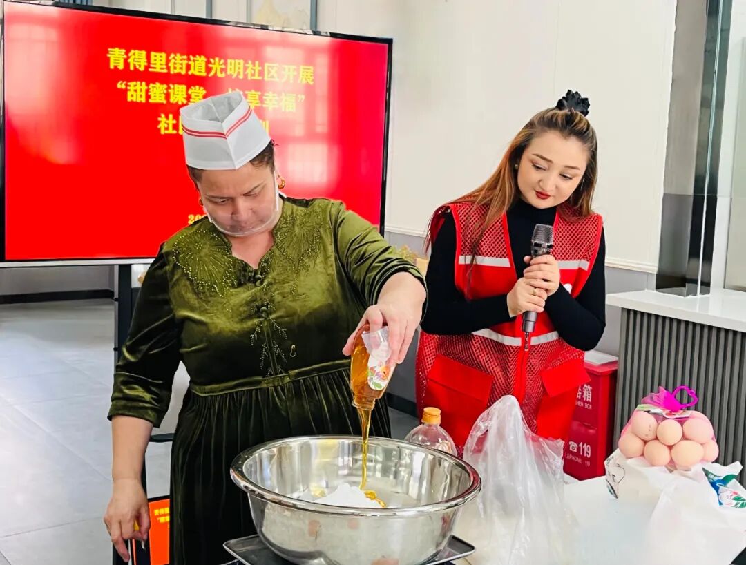 近日,博乐市青得里街道光明社区举办“甜蜜课堂,焙享幸福”甜品制作培训活动,特邀辖区专业甜品师现场授课,吸引不少居民踊跃参与。