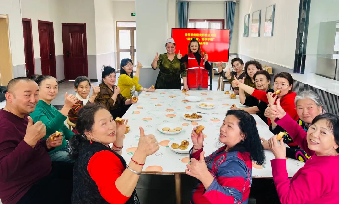 “原来奶油这样打发更稳定。”“自己做点心用料更放心,糖分也能自己控制。”居民们相互交流心得,老师穿梭在学员中手把手指导纠错。不一会儿,造型精致、色泽诱人的饼干陆续出炉,大家品尝着亲手制作的甜品,脸上满是幸福与满足。