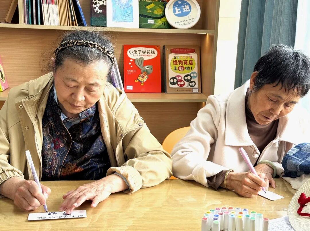 手绘书签创作环节,在社区干部和老师的引导下,孩子们和居民拿起画笔,围绕“春天”“阅读”“菜园”等主题,在空白书签上尽情挥洒创意。嫩绿的叶子、盛开的花朵、喜欢的读书格言……小小的书签承载着大家对阅读的热爱与对美好生活的向往。制作完成后,大家互相展示、交换书签,现场洋溢着浓厚的书香与欢声笑语。