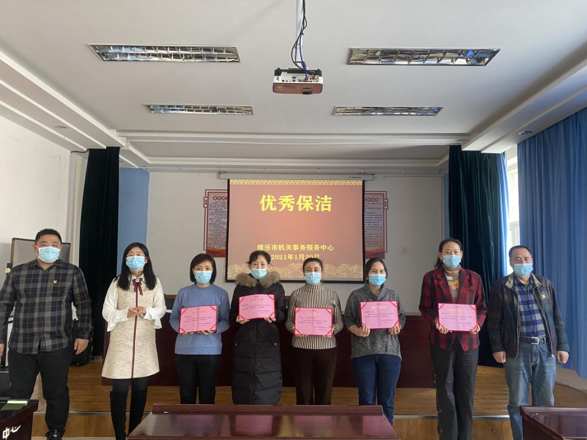 为进一步提高中心干部职工工作的积极性,增强安保人员、保洁人员在疫情防控和维护稳定工作中的凝聚力,始终保持良好的工作作风和严谨的工作态度,1月29日,博乐市机关事务服务中心举办了2020年度安保人员、保洁人员表彰大会。