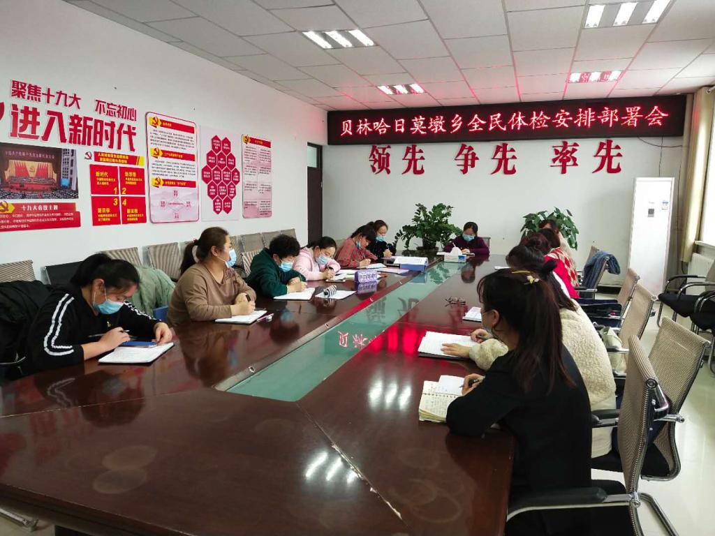 为扎实推进医疗惠民工程,进一步做好全民免费健康体检工作,2月23日上午贝林哈日莫墩乡召开了2021年全民健康体检部署会,贝林哈日莫墩乡12名全民体检干事参加了此次会议,会议由贝林哈日莫墩乡副乡长刘莉梅同志主持,会议对前期全民体检准备工作进行再安排、再部署、再推进、再落实。