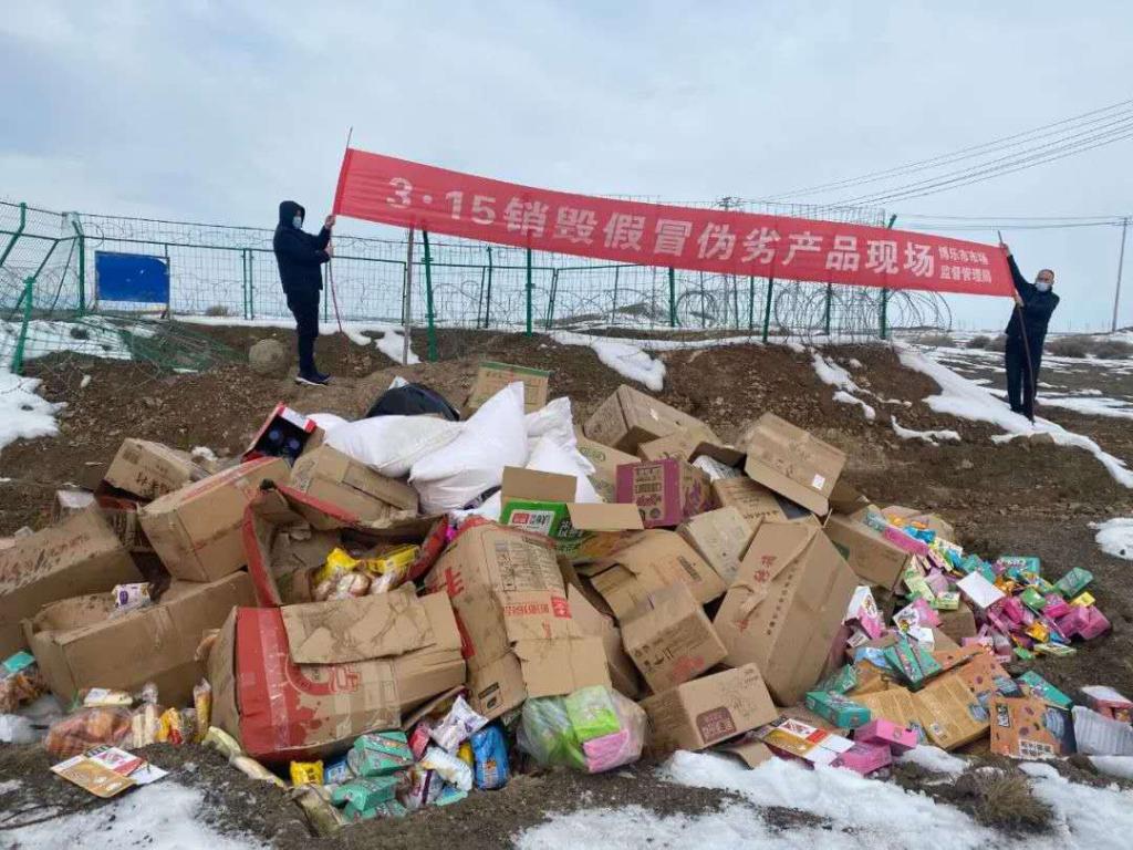 二是开展集中销毁行动,震慑制假售假行为。3月13日上午,博乐市市场监督管理局会同博州市场监督管理局联合开展了“3.15”假冒伪劣产品集中销毁行动,集中销毁了8类1000多件价值10万元的假冒伪劣商品。