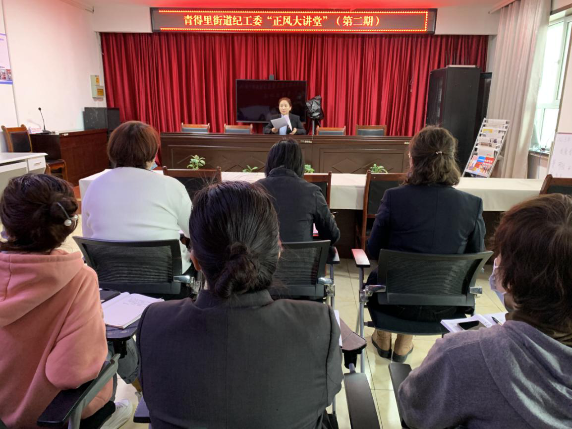 3月29日,博乐市青得里街道纪工委开展“正风大讲堂”专题讲座,集中学习《中国共产党廉洁自律准则》。街道机关全体干部职工30人参加集中学习。