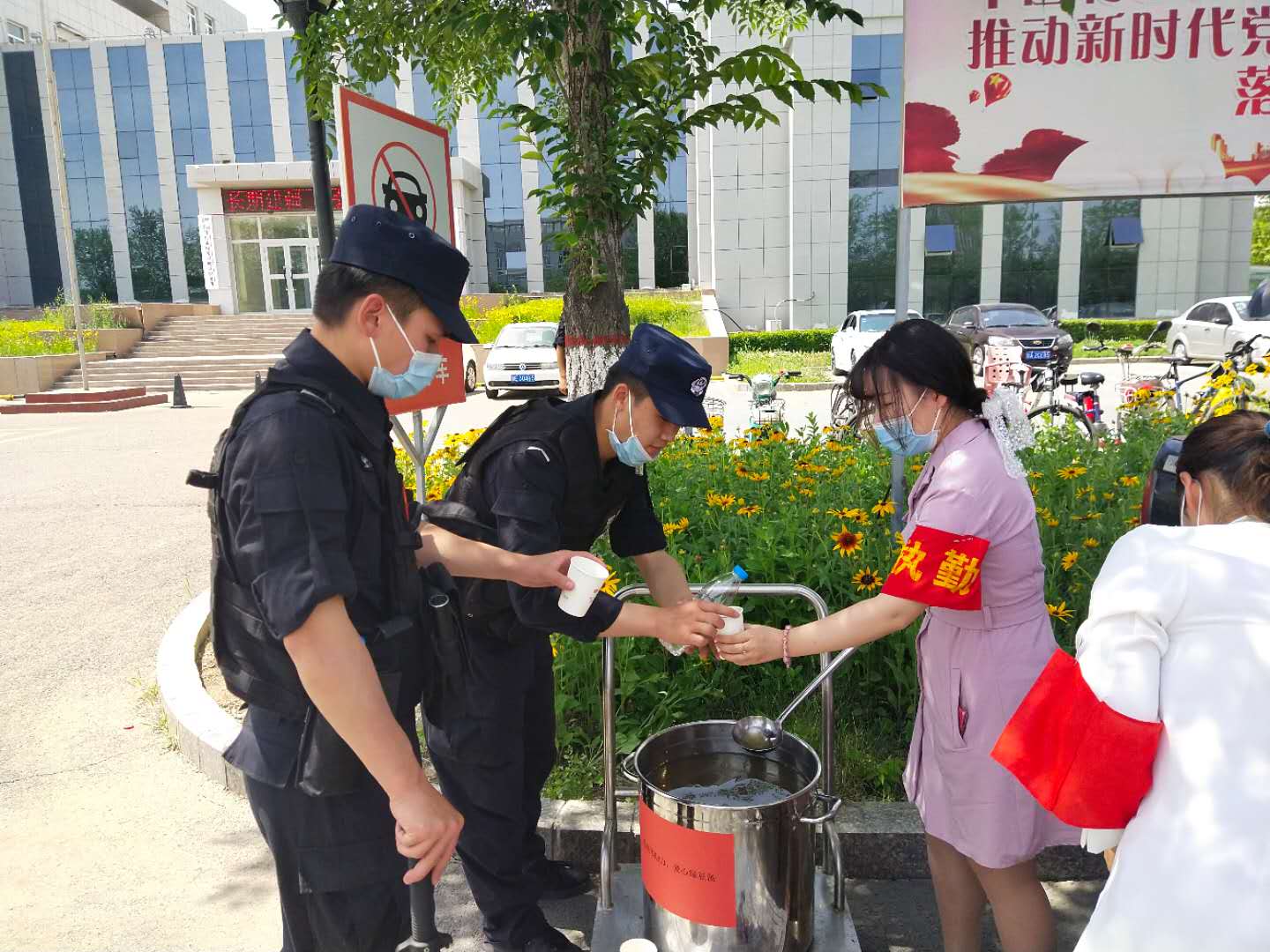 中心志愿者们在行政办公区各栋楼路口进行文明引导、秩序维护,搭建起爱心助考点,为考生和考生家长提供“爱心绿豆汤”和“爱心停车位”。在给考生家长引导车位、提供绿豆汤的同时,与考生家长们聊天谈心、开导家长,缓解家长焦虑不安的情绪,温馨和谐的氛围,给炎炎的夏日注入了一剂清凉。志愿者们以实际行动为广大考生加油鼓劲,表达了对广大莘莘学子的美好祝愿。