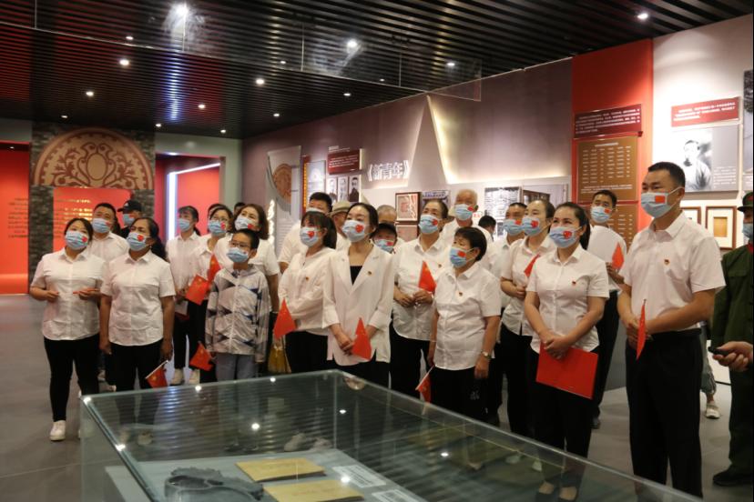 活动的第一个环节是参观纪念馆,党员们怀着一份崇敬的心情,认真观看馆内珍贵图片、资料以及革命先烈曾经使用过的手榴弹、草鞋等物品,并认真聆听解说员的对中国共产党第一次扩大会议等历史时间的生动讲解。参观完后,工作队队长谷春光及副队长其其克为支部新发展预备党员佩戴党员徽章,并带领全体党员面对党旗进行宣誓,重温入党誓词,表达对党忠诚、为党的事业奋斗终身的决心。