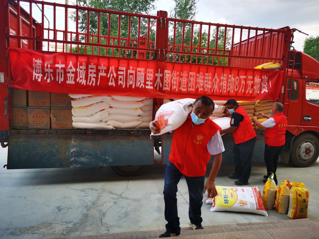 此次疫情防控战役打响以来,顾里木图街道全体工作人员严阵以待,推动各项防疫措施落细落实,用辛勤的汗水守护着博尔塔拉蒙古自治州这片净土。街道、社区工作人员的不辞辛劳、勇担使命的精神品质,让博乐市金域房地产开发有限责任公司总经理吐尔逊·买买提深受触动。为表达对抗击疫情奋战的街道和社区工作人员的敬意, 捐赠了价值8万元的生活物资,为辖区的困难群体送去了关爱和温暖。
