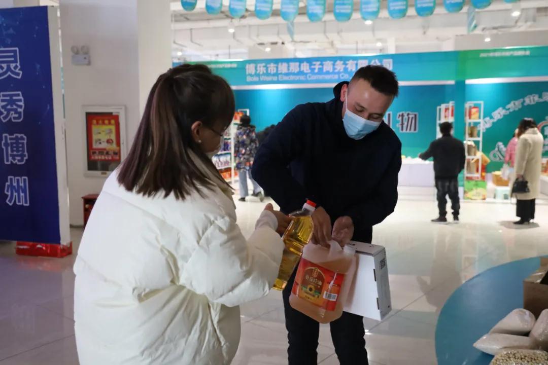 博乐市市民康东花说:“看抖音刷到了博乐市融媒体中心的直播活动,没想到我很幸运地抽到了三个奖品。今天在展销会现场领奖,没想到咱们本地有那么多特色产品,口味也非常正宗,多买一些,带回去让老人和孩子都尝尝。”