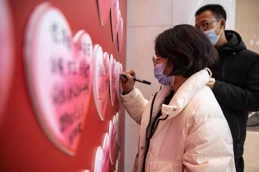 群众在博乐市新时代文明实践中心心愿墙上签字
