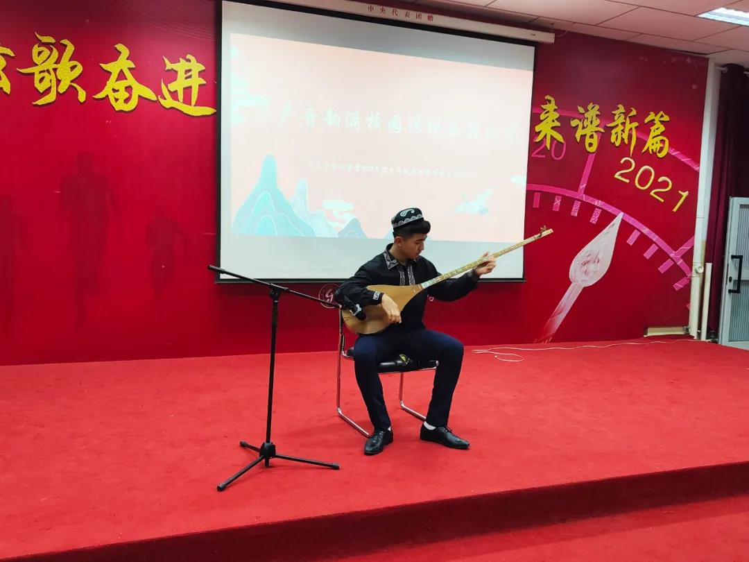 据悉,博乐市第七中学于2018年确立了“合格+特长”的学生培养目标,2020年加入博乐市强校工程,2021年入选自治区首批美育特色学校。学校坚持以社会主义核心价值观为引领,根植中华优秀传统文化深厚土壤,坚守中华文化立场、传承中华文化基因,让学生在学习中华优秀传统文化艺术、参与丰富多彩的美育活动的过程中,培育深厚的民族情感,增强文化自觉和文化自信。