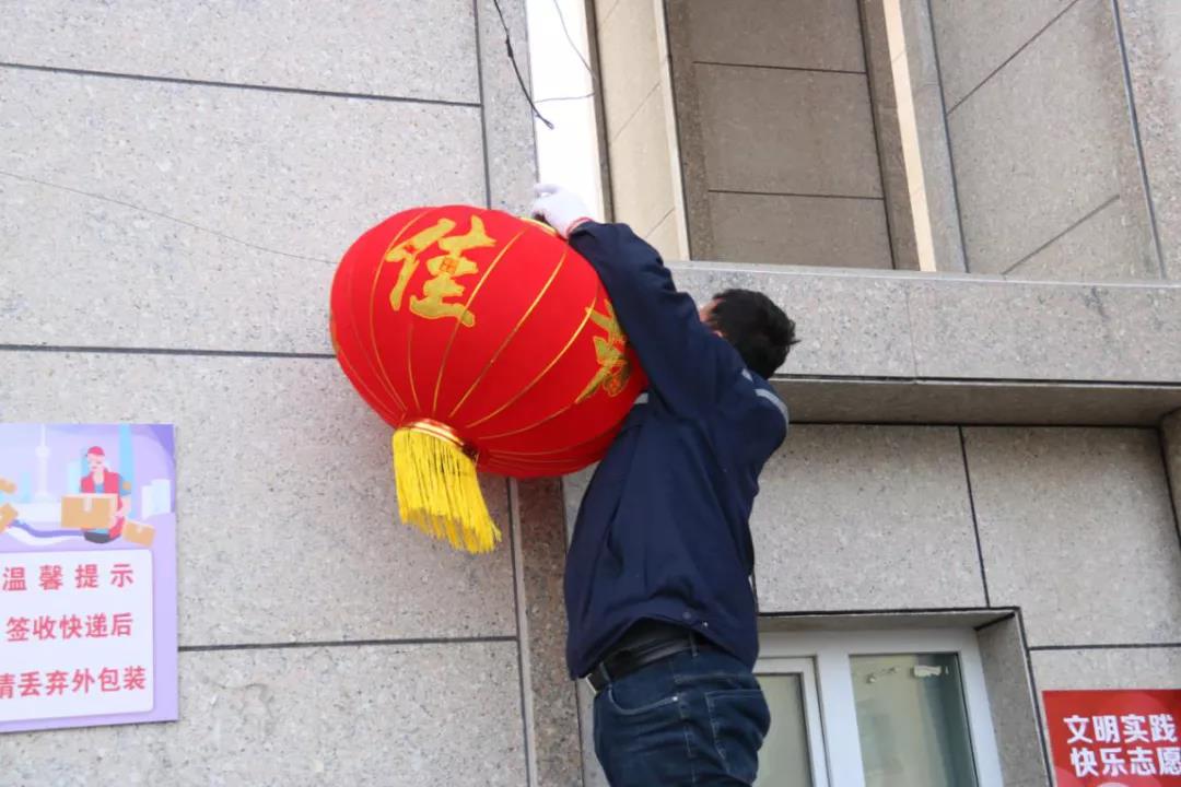 12月30日,小营盘镇机关、各村队(社区)通过悬挂灯笼、红绳、七彩花瓣、彩灯等形式,在单位门口挂上了大红灯笼,辖区节日氛围顿时一派喜气洋洋,年味十足。