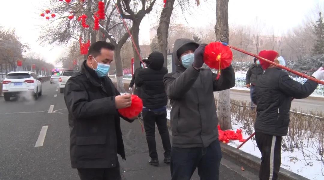工作人员们拿着梯子,带着钳子、铁丝,在大家的携手努力下,一个个带有祝福的红灯笼挂在了街头,具有浓厚节日气息的各类红灯笼,为整个城市增添喜庆的色彩,也寄托了人们对美好生活的追求和向往。