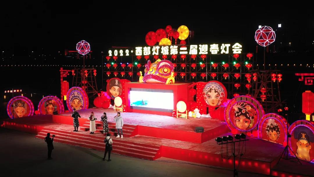 东风送暖春意闹 花灯十里正迢迢“2022博乐市第二届西部灯城·迎春灯会”在歌曲《新的天地》中开幕,一首首赞美家乡歌曲,引来现场观众阵阵掌声。