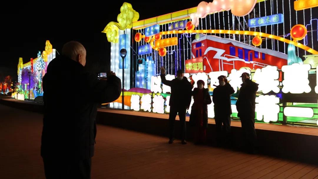 乌鲁木齐游客说:“我是从乌鲁木齐过来的,第一次和家人来博乐,灯会特别漂亮,感觉博乐市以生态文明思想指引建设的效果特别好。”