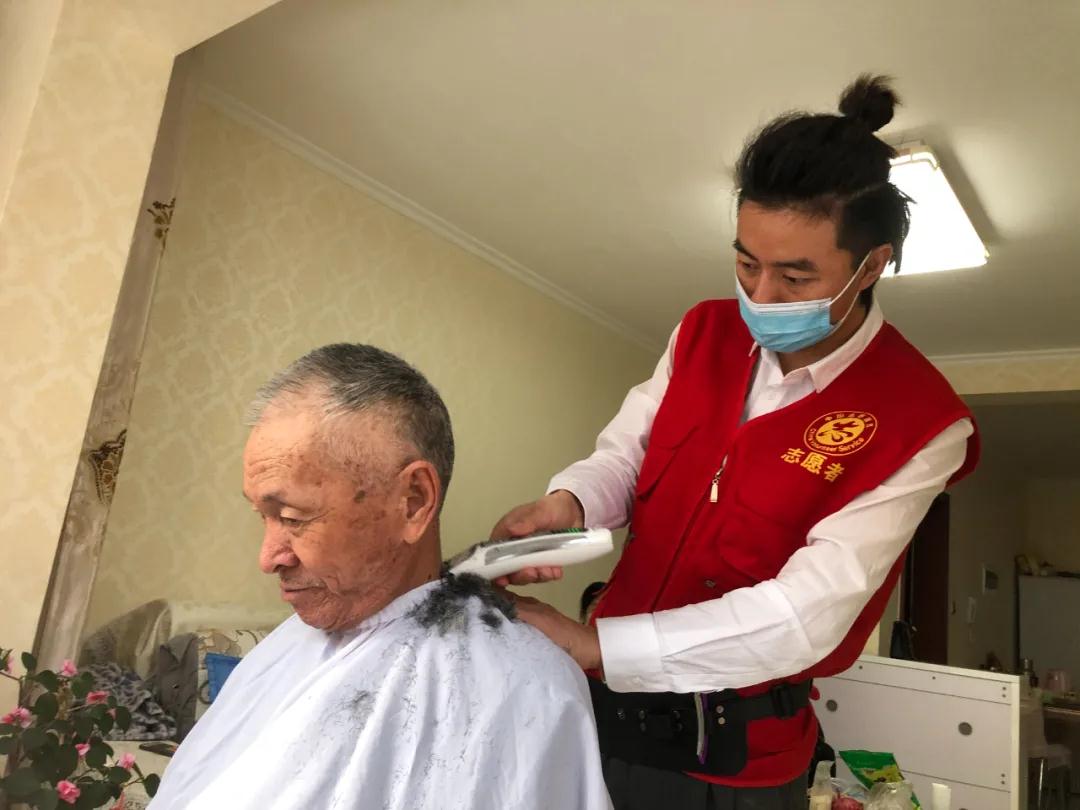 来自丝语美业的义剪理发师蒙伟扶着老人坐在椅上,为老人系好围布,熟练地理起了发,并和老人聊起了家常,使老人们切身感受到了无微不至的爱意,为他们在寒冬中带去温暖,张银祥老人说:“社区对我们太好了,这次带来了义诊还有义剪的义工们上门服务,感谢党对我们的关怀,谢谢你们。”