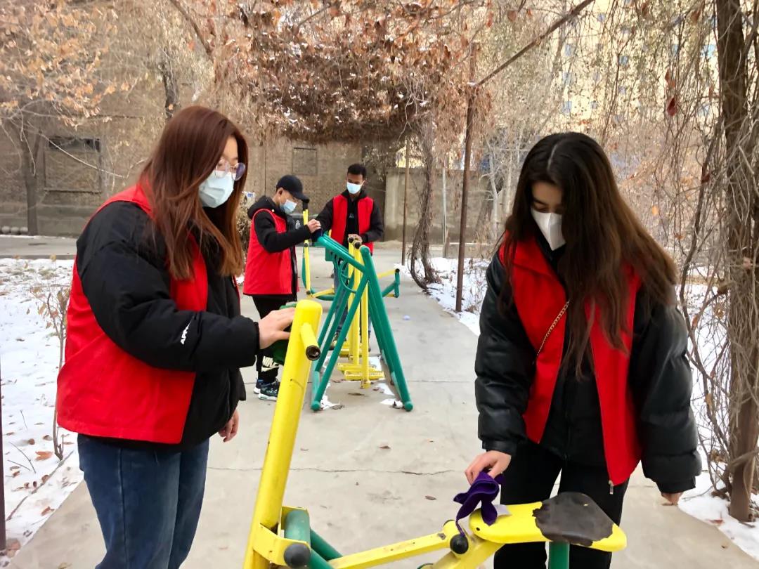 1月7日,博乐市的路上多了一道亮丽的风景线,来自博乐市顾里木图街道兴博社区辖区的大学生志愿者分工协作在所在辖区各小区集中开展环境卫生整治行动。