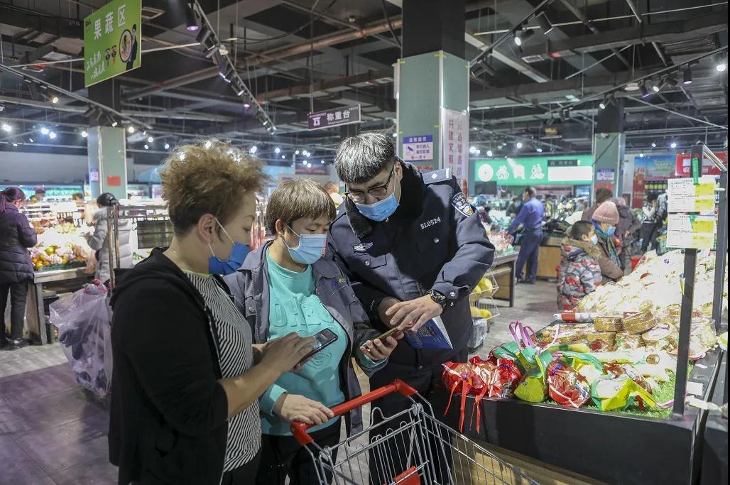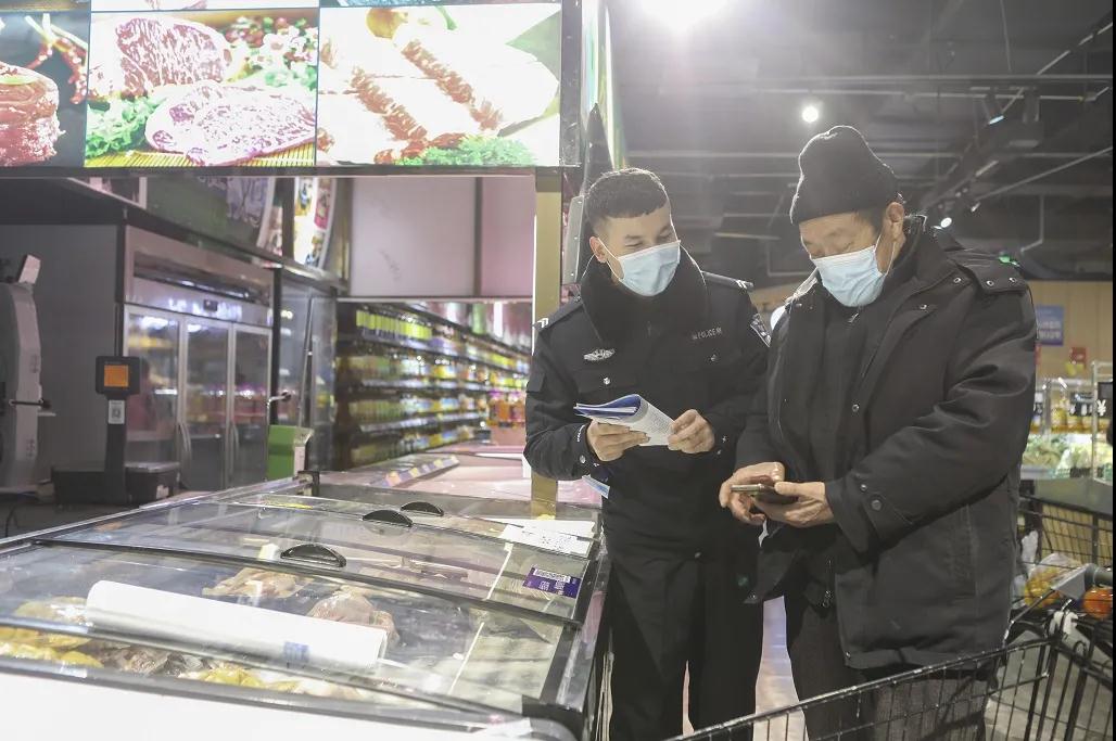 原来,随着“春节”临近,大家开启疯狂购物的同时,诈骗分子也在伺机而动,“假客服”、“中奖免单”等诈骗案件发案量呈上升趋势。为了提高辖区群众的反诈意识,博乐市公安局青达拉派出所想出了“金点子”,别出心裁的盯上了群众的“菜篮子”,将“反诈”与“买菜”这两件看似毫无关联的事结合起来,青达拉派出所将人流量最大、辐射面最广的超市打造成了“反诈宣传阵地”。让群众在置办年货的同时,守好自己的“钱袋子。”