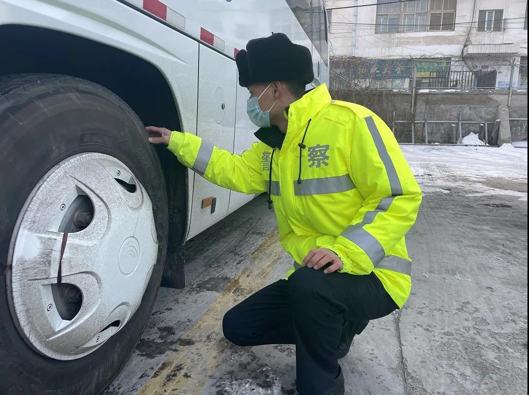 春运期间,博乐市公安局交通管理大队车管所民警走进客运企业开展安全检查工作,加强重点运输车辆交通安全监管,筑牢道路交通安全防线。