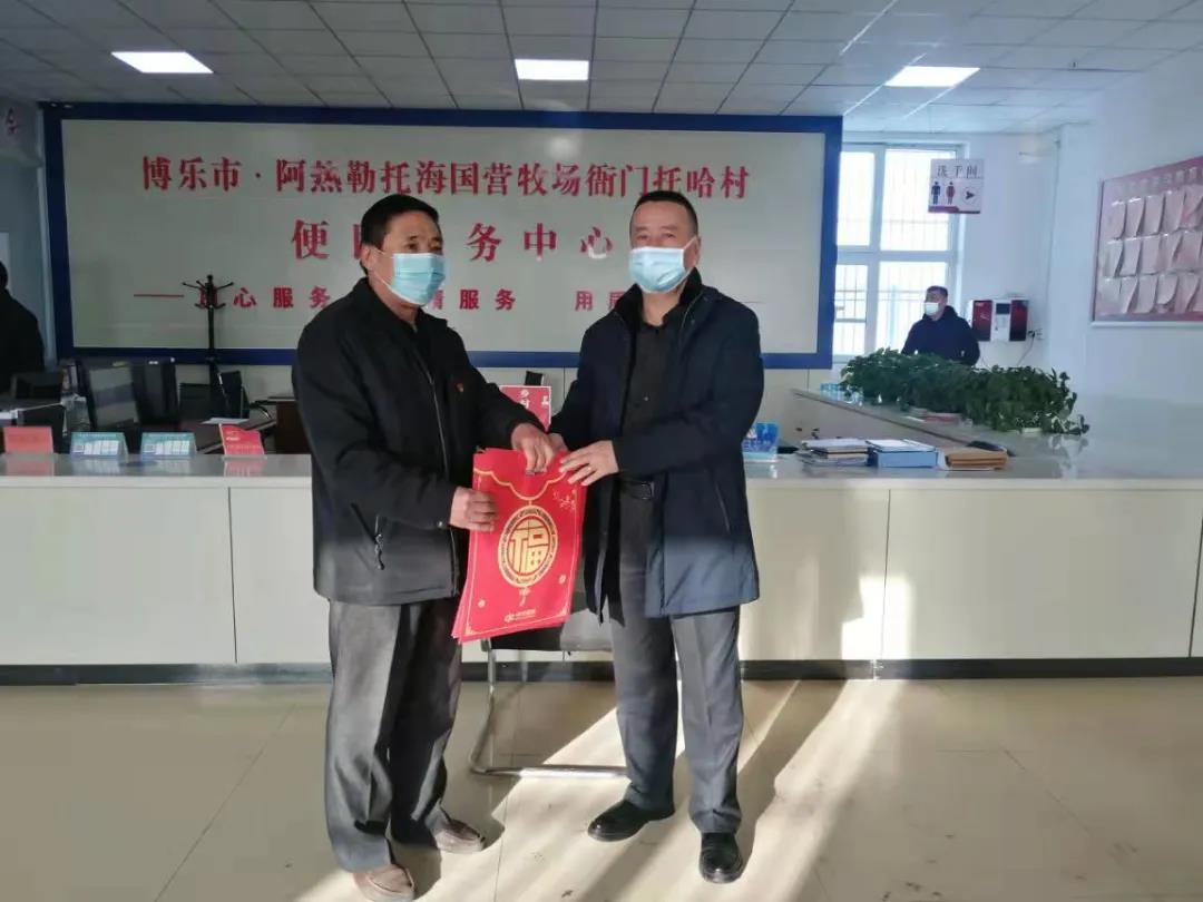 苏德玛一行来到村委会进行探望,详细了解了驻村工作队的工作、生活情况,送上了灯笼、对联,并对衙门托哈村2021年的各项工作给予了肯定,表示博州政协作为衙门托哈村帮扶后盾单位,将会继续主动担起后盾帮扶责任,积极发挥职能优势,助推阿热勒托海牧场衙门托哈村的建设发展。