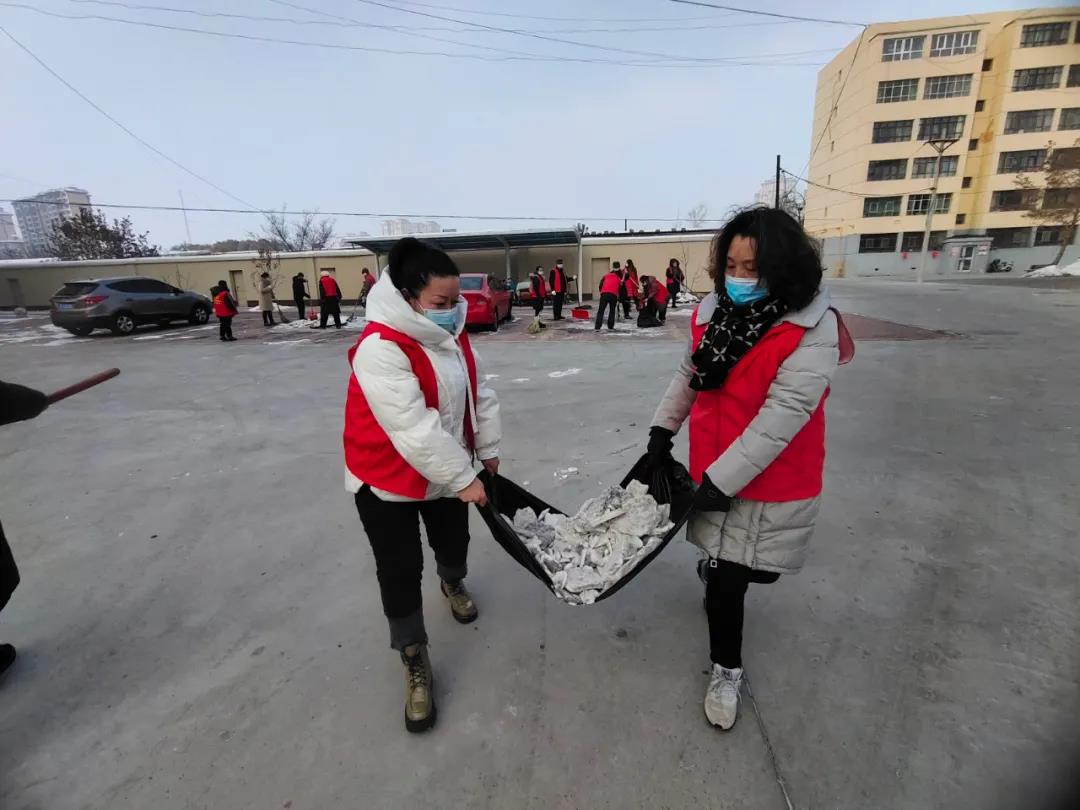 活动中,党员干部、志愿者们身穿“红马甲”手执铁锹、扫把、铁钳子,认真地清理辖区内的卫生死角。天气虽然寒冷,但并没有消减大家爱护环境的热情,个个干得热火朝天,居民路过,纷纷为志愿者们竖起大拇指。