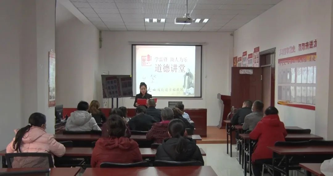 博乐市南城区街道幸福社区利用道德讲堂形式,通过群众身边看得见、学得到的“凡人善举”,宣扬助人为乐、见义勇为、诚实守信、孝老爱亲的道德品质,引导社区居民自觉践行社会公德、职业道德,争做传播正能量的文明使者、奉献社会的建设者。