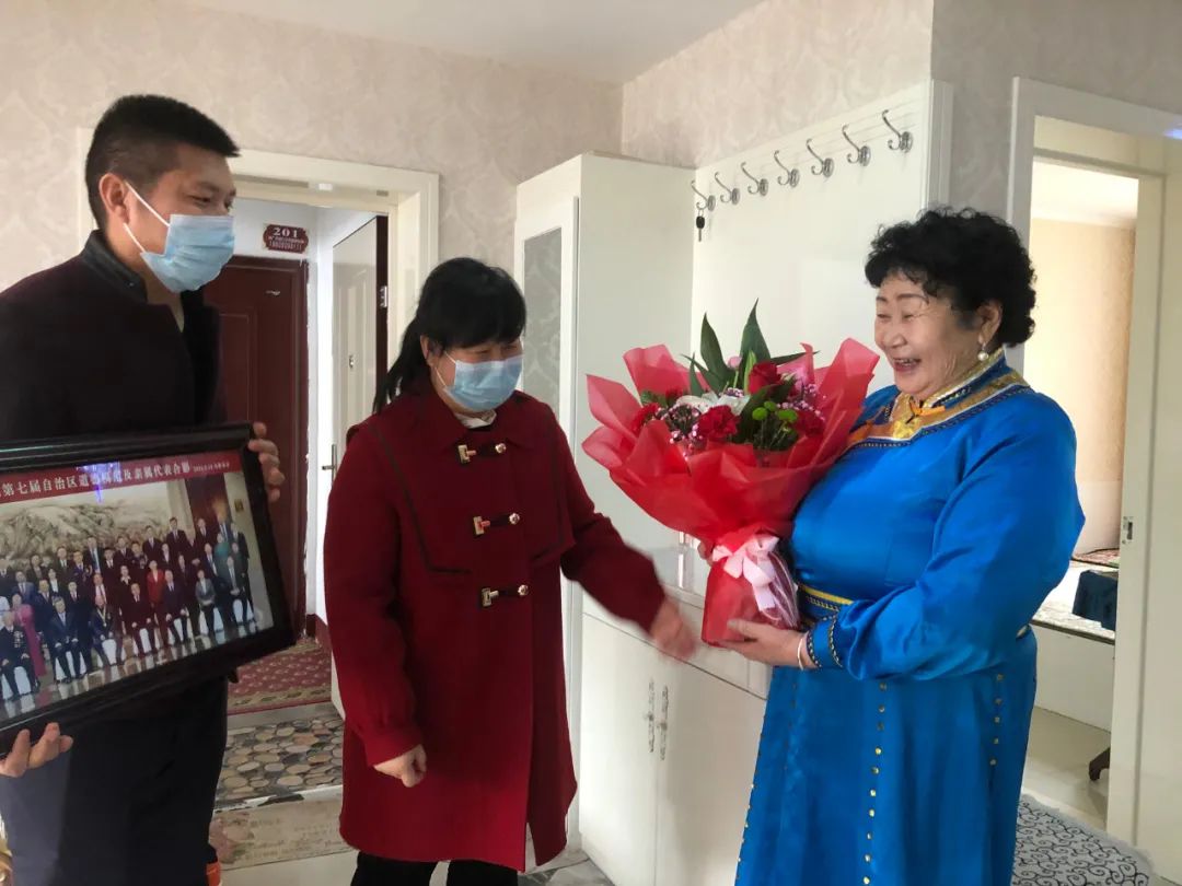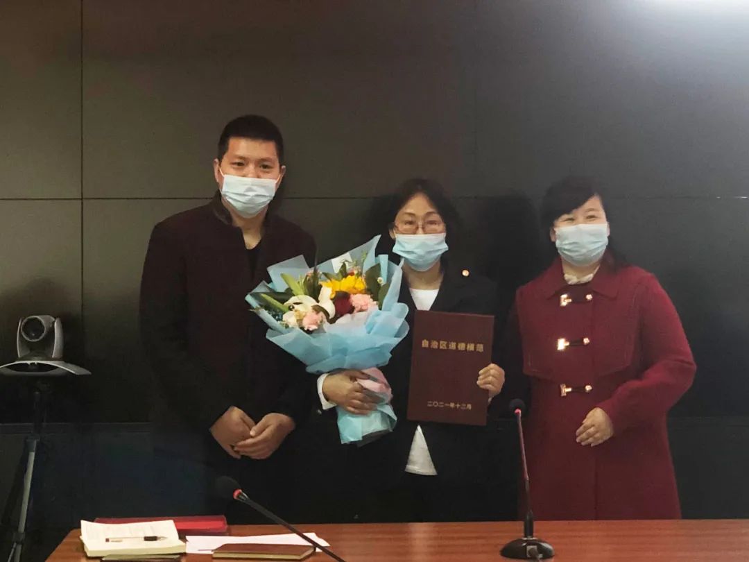 在第七届自治区民族团结道德模范瓦里家中,慰问组为她送上马兴瑞书记等自治区领导同志接见第七届道德模范及其亲属代表合影照片和鲜花。在戴爱梅和罗瑞华的工作单位,慰问组为他们分别送上“第七届自治区敬业奉献模范提名奖”“第七届自治区孝老爱亲模范提名奖”荣誉证书和鲜花。慰问组勉励他们继续弘扬诚实守信的传统美德,更好地发挥榜样作用,带动身边人,影响更多人,向社会传递更多向上向善的正能量。