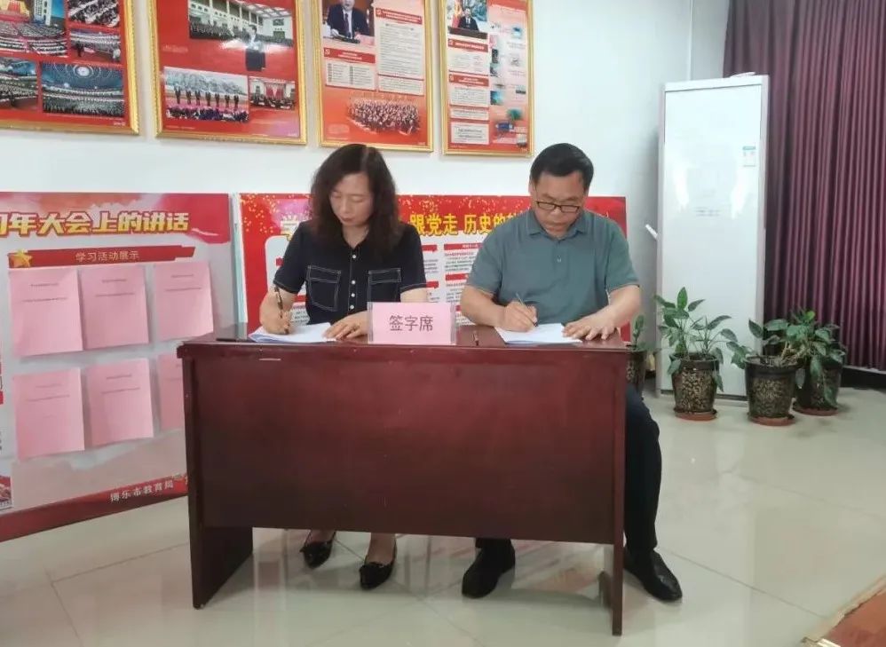 会上,市教育教学研究中心主任罗元飞宣读了《博乐市2022年全国普通高等学校招生统一考试工作方案》,明确了各单位的责任及各项工作要求。李彦铎与市招委会成员单位签订《博乐市2022年国家教育考试突发事件应急处置管理工作目标责任书》、田晶与考点学校主考签订《博乐市2021年全国普通高校招生统一考试考点学校安全、保密、考务管理工作目标责任书》。