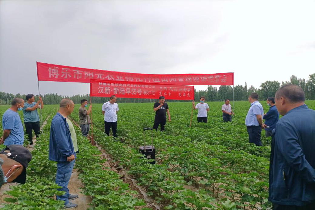 6月是棉花花蕾生长期,也是搭好丰产架子的关键时期,2022年6月16日,为抓好棉花中后期管理,提高棉花产量、质量,博乐市国资委下属子公司阳光农业公司组织召开了棉花种植田间管理现场会,博乐市种业发展中心负责人及相关业务人员、阳光农业各分公司经理及各种业公司负责人、棉花种植农户代表等30余人参加了观摩会。