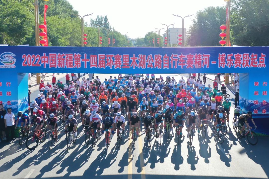7月22日10时,中国新疆第十四届环赛里木湖公路自行车赛第一赛段在精河县生态园鸣枪开赛,来自国内33支高水平车队的170名运动员开始了本届环湖赛的第一场角逐。
