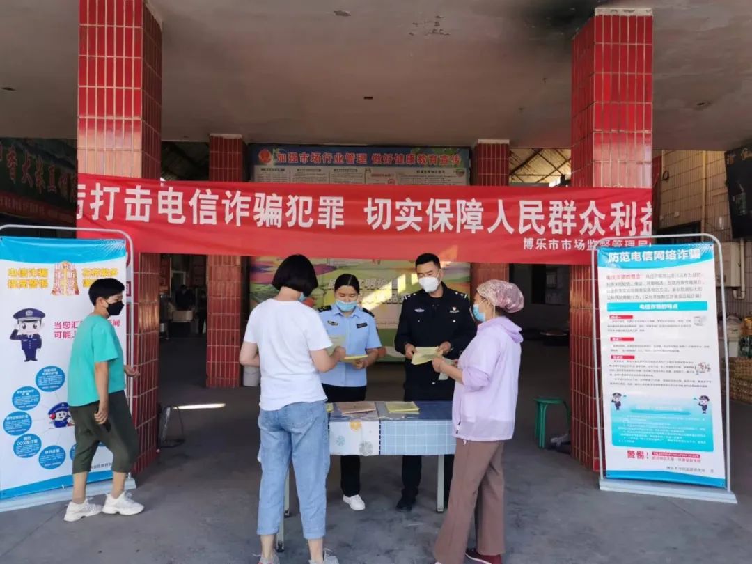 为有效预防养老诈骗和减少电信网络诈骗案件的发生,提高居民防范意识和能力,保障居民财产安全,全力营造全民防诈反诈宣传氛围。2022年8月27日,博乐市公安局东风派出所联合市场监督管理局工作人员在辖区开展防范电信网络诈骗宣传活动。