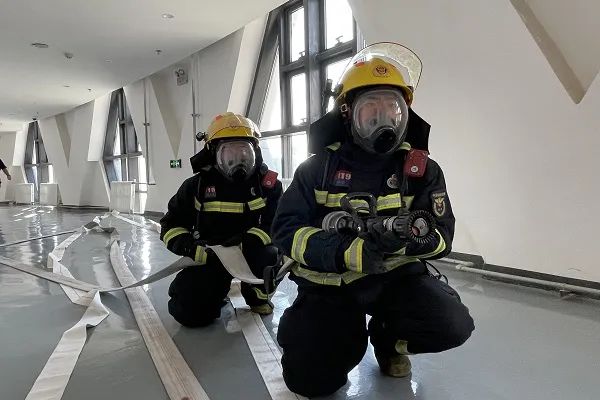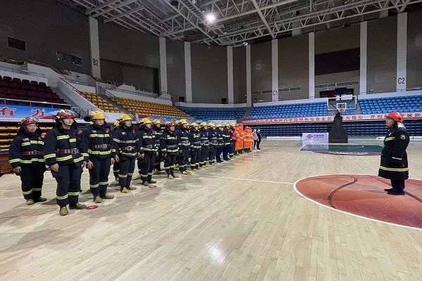 此次拉动演练模拟博州全民健身中心·文化艺术中心篮球馆影音设备间因电气线路故障发生火灾。接到报警后,支队依据灾情迅速启动预案,现场安保小组进行初期处置,同时调集赛里木湖路、健康路消防救援站5车30人到场增援。到场后,各小组按照分工有序展开,灭火救援组进行侦察警戒、疏散救生、照明排烟、启动内部消防设施、利用消防车出水炮和室内消火栓出水枪堵截火势,利用高喷车从外围冷却;通信保障组做好视频、音频调试传输,保证救援人员通信和视频图像传递畅通;战勤保障组调运空气呼吸器、移动水炮和装备维修车等保障物资装备到场增援,先后开展了紧急疏散、火情侦查、排烟、人员搜救及灾情突变、紧急撤离等科目。