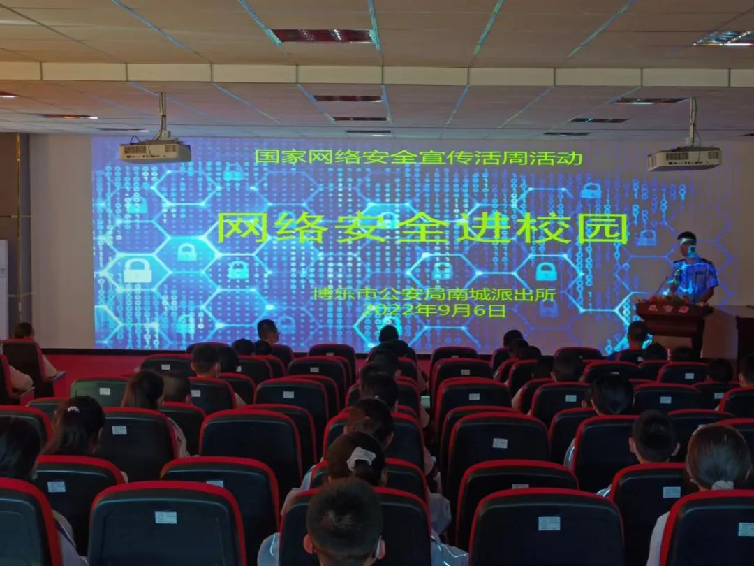 9月5日至12日是国家网络安全宣传周,9月6日博乐市公安局南城派出所民警围绕“网络安全为人民,网络安全靠人民”主题,组织开展网络安全进校园宣讲活动,进一步提升广大师生的网络安全意识,普及网络安全知识。