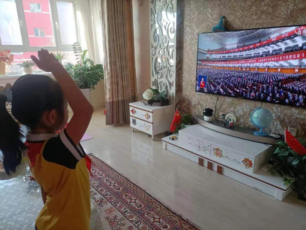 克尔根卓街道西环社区辖区少先队员观看党的二十大开幕会盛况