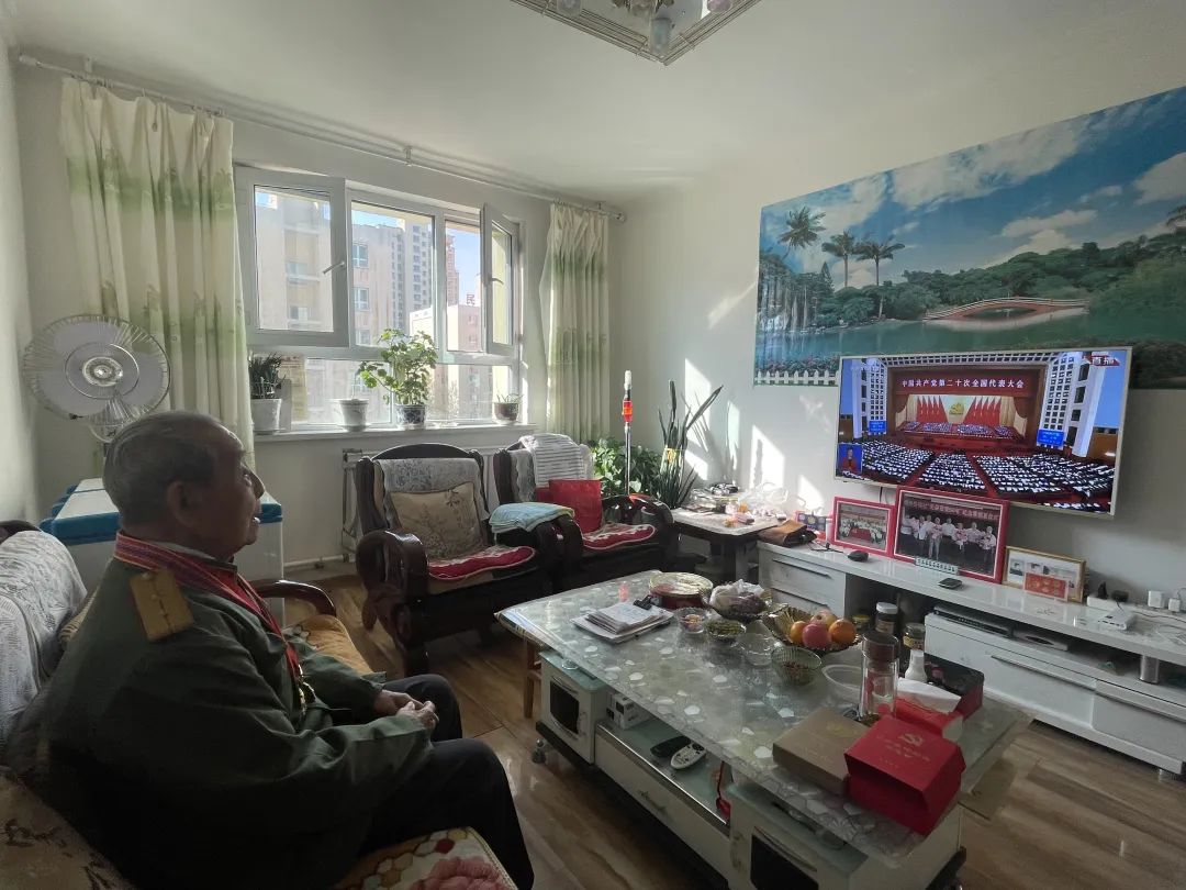 克尔根卓街道光博苑社区抗美援朝老战士付坤湖在家观看党的二十大开幕会盛况