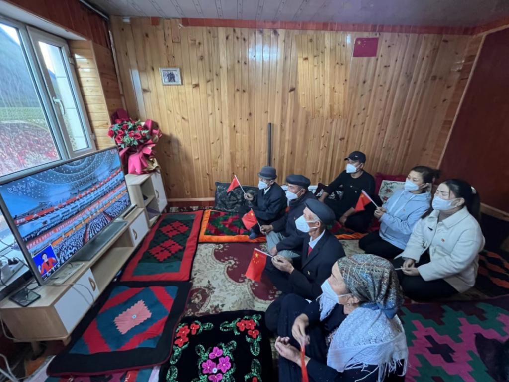 小营盘镇多尔巴尔托哈村党员群众在家中观看党的二十大开幕盛况
