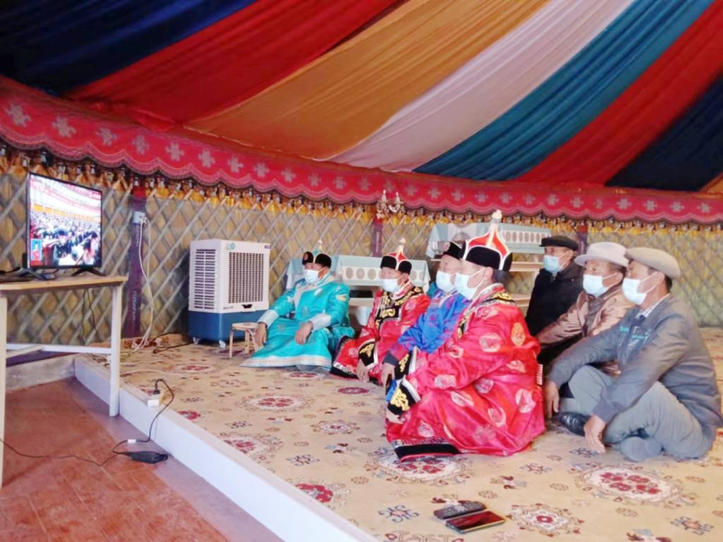 小营盘镇明格陶勒哈村牧民在家中观看党的二十大开幕会盛况