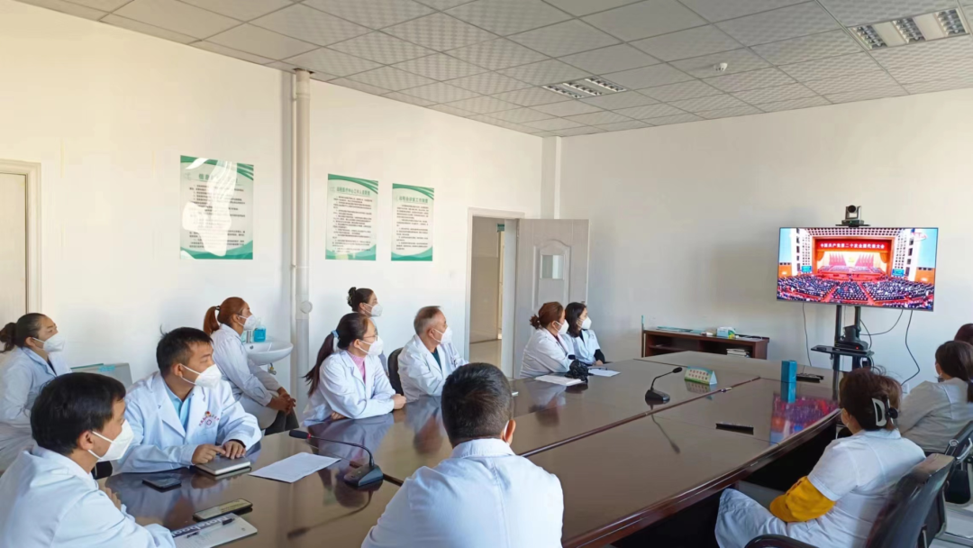 博乐市人大代表王昌龙与乡镇医院医护人员一起观看党的二十大开幕会盛况