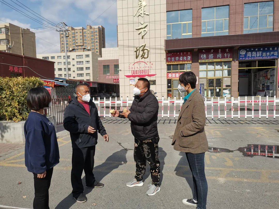 健康路早市素荣蔬菜水果店蒋中友说:“因为天气冷的原因,我害怕土豆烂掉,社区政府帮我消化掉了,我非常地感谢他们。”