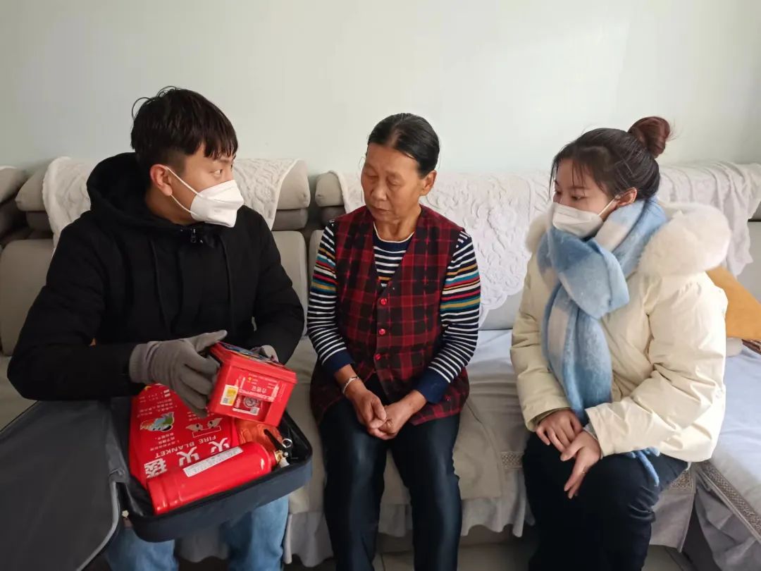 参加消防关爱行动的社区志愿者登门入户耐心为老人们讲解消防器材的使用方法,提醒老年人们平时居家一定要注意用火、用电、用气安全。叮嘱老人:一旦发生火灾,烟感器会及时发出警报声,这时不要慌张,首先查看火灾大小情况,如果是初发的着火点,第一时间使用灭火毯扑灭并查看;如果火灾已经燃烧起来,赶紧及时逃生并求救。